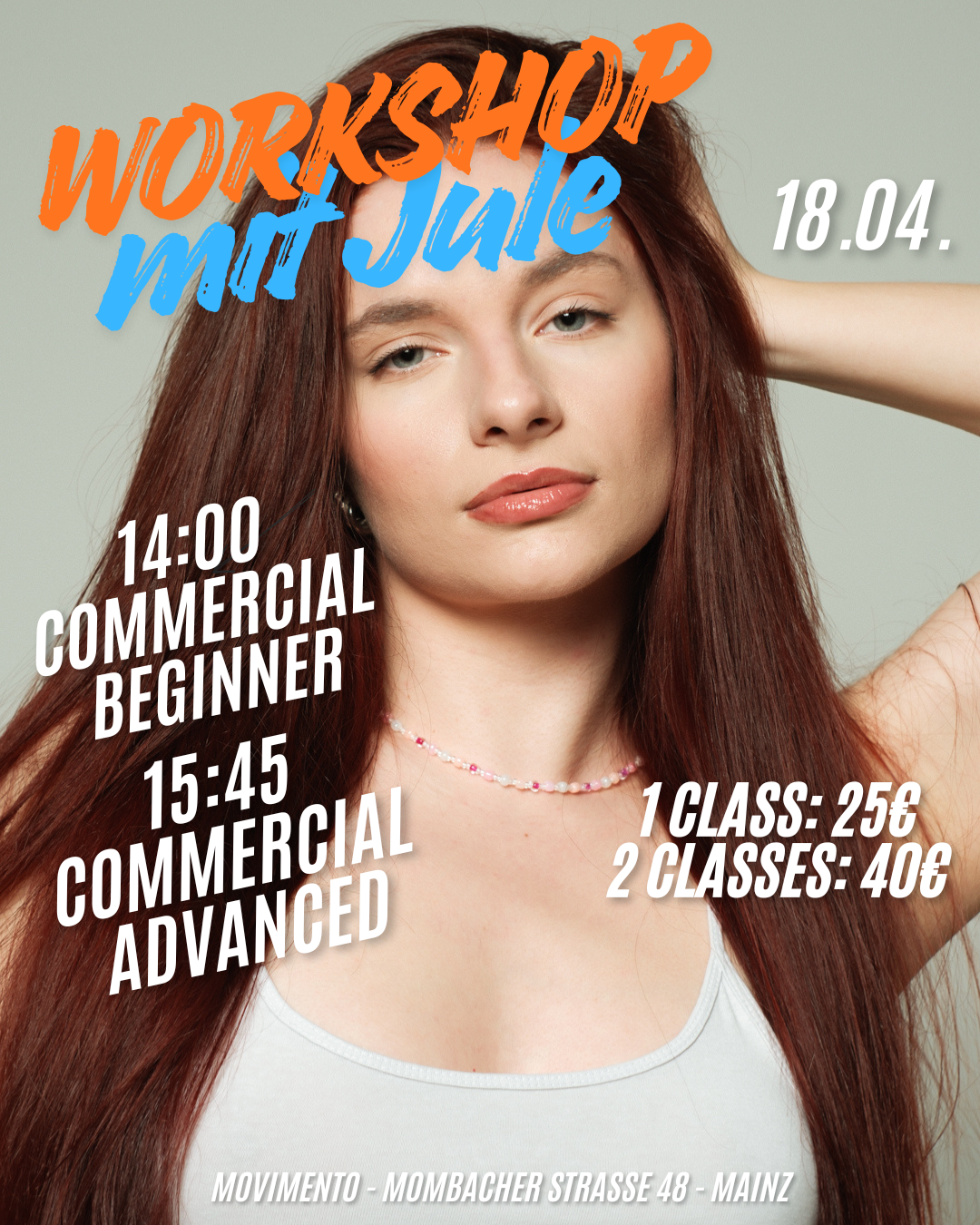 14:00 – Commercial Beginner: für den Einstieg sehr zu empfehlen. Auch mit etwas Tanzerfahrung kommst Du hier auf Deine Kosten.